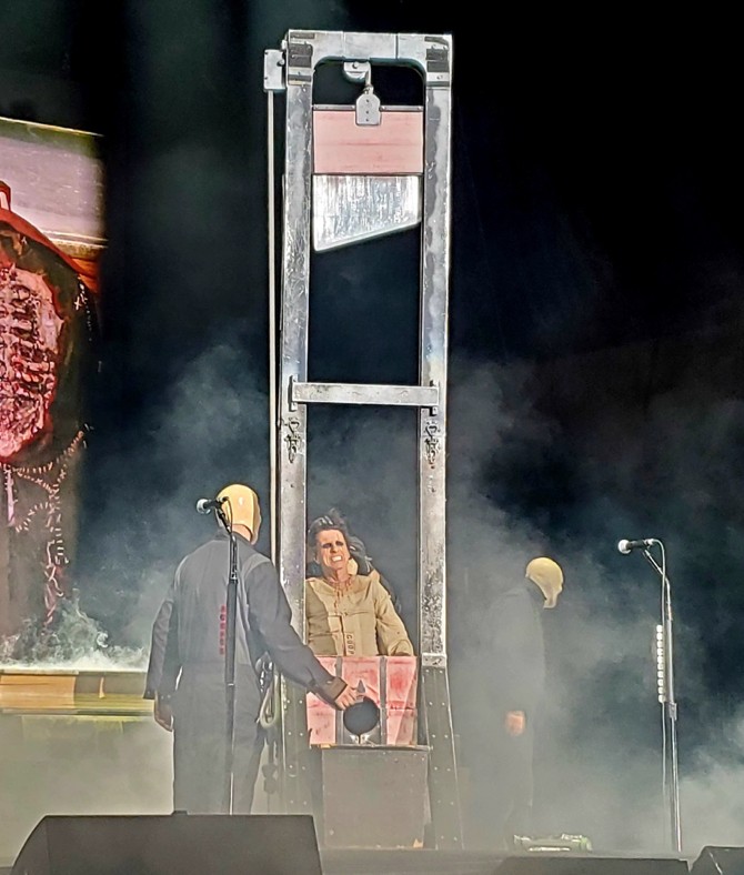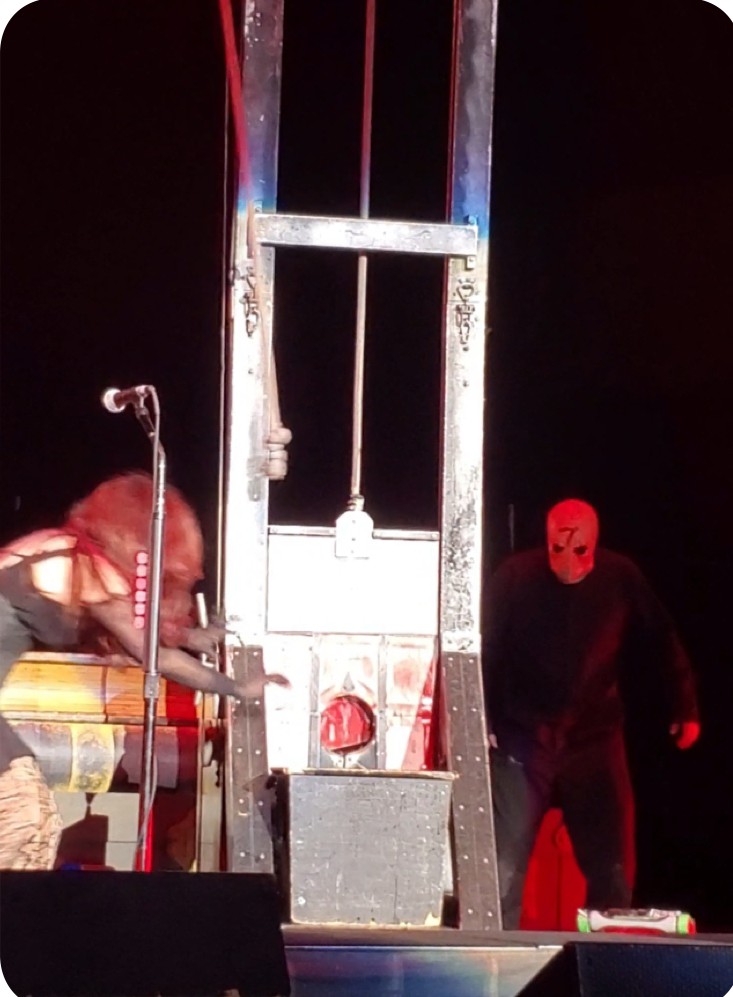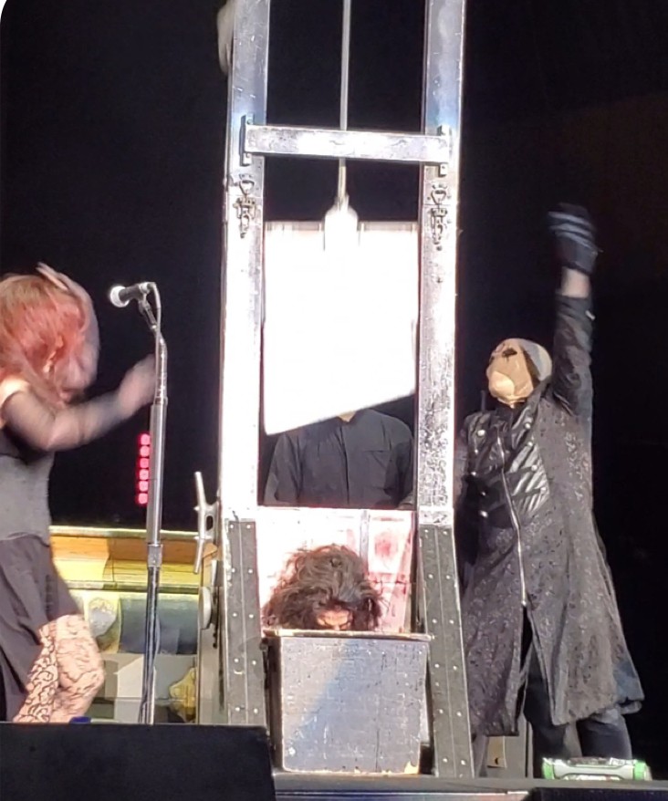 On the theatrical end of things it was classic Alice. The impaling of a bothersome photographer, the “Cold Ethyl” doll, the straight jacket, the 15 foot tall Frankenalice and of course the guillotine. His wife actually played the role of executioner.