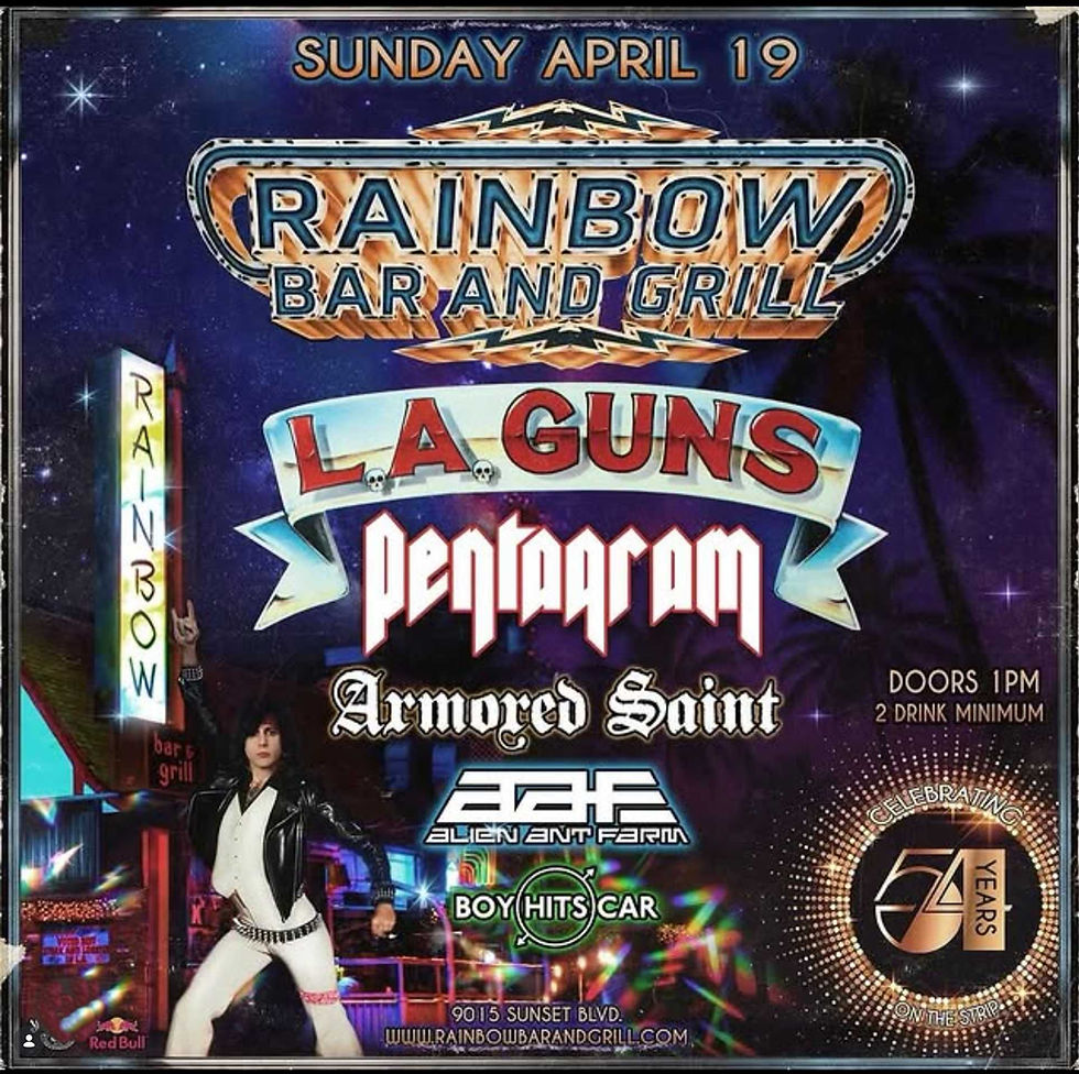 In any case since the early/mid 90’s I’ve been a regular patron of The Rainbow Bar and Grill. It’s the Mecca of Rock n’ Roll AND Metal. I’ve been there more times than I can count and had a great time EVERY time. How could you not love a place where you can enjoy an AWESOME slice of pizza, look at priceless artifacts from R n’ R history and have a cocktail all set to the tune of Obituary, Sabbath, Slayer and Fastway? Again, never had a lousy time there.